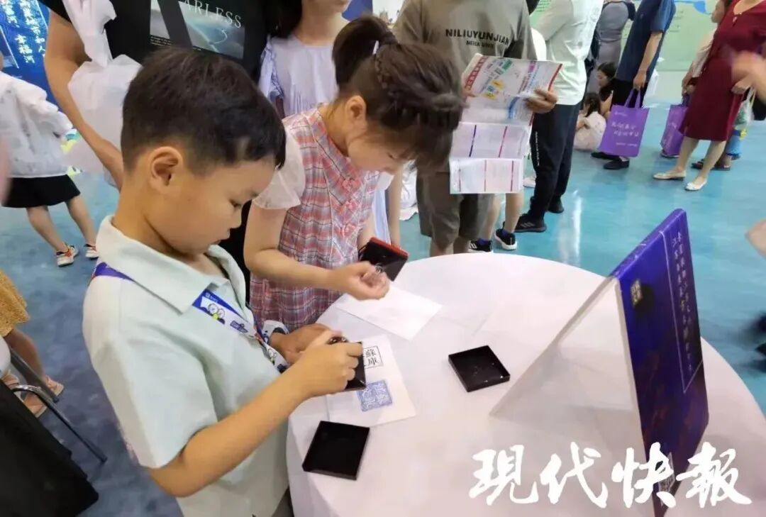 侯女士也带着两个孩子在《江苏文库》的展区流连,给10岁的儿子和3岁的小女儿拍照。特别是小女儿,个头小小,却对自己根本看不懂的“大部头”兴致勃勃,小手摸摸这本、摸摸那本,侯女士也开心地给女儿和《江苏文库》拍着各种角度的合影。“这个展陈很有气势、很有文化。虽然孩子现在还看不懂,但是希望他们能够被这种氛围熏陶。”