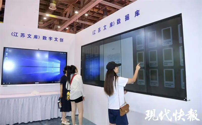 “数字展区的内容主要是三块,第一块是大运河数字内容资源库,第二块是《江苏文库》的数据库,第三块是江苏省数字农家书屋平台。”凤凰传媒数字化中心副主任蔡立介绍,今年的展出采用了不少创新的方式,读者可以通过元宇宙直接体验大运河的壮阔,可以通过数字文创,接触江苏文库、江苏文脉。“通过这样直观、数字化的方式,让大家体验江苏历史文化,也对我们的数字化产品有更深的印象。”