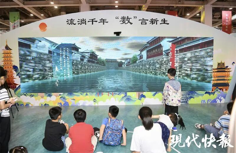 据了解,“流淌千年 ‘数’言新生——穿越时空的大运河”数字体验展览,采用数字复原、体感交互等技术手段,融入故事设计,鲜活生动地再现古代江苏运河人文景观、城市风貌及发展脉络。其中满满的互动体验感,让展厅里总是围着一大群小朋友,大家席地而坐,沉浸式感受千年运河的魅力。