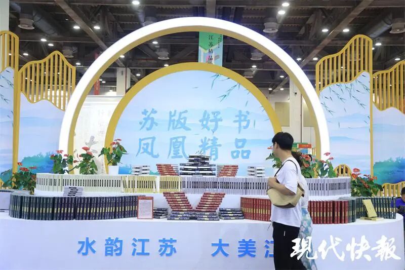 在江苏精品馆的显著位置,摆出了已出版的《江苏文库》,三层的展台上满满当当,十分壮观。厚厚的书籍中,记录下了江苏源远流长的历史文脉。