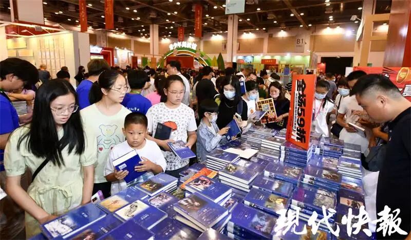 看书买书的人多,参展的名人名家多,特色展览、体验项目也多。马伯庸、程章灿等主讲的“书香中国·全民阅读大讲堂”一票难求;“长江·大运河文化”“墨香凤仪——孙晓云书法手稿”“晒晒我的家庭书房”“昆虫印象”“三体科幻图书”等展览前挤满观展的市民;在方志江苏馆一次集齐“江苏十三市文化地标章”则成了新的逛展方式。