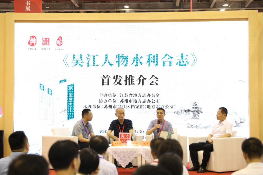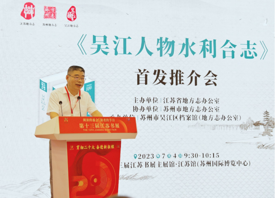 2023年7月4日上午,由江苏省地方志办公室主办,苏州市地方志办公室协办,苏州市吴江区档案馆(地方志办公室)承办的《吴江人物水利合志》首发推介会在第十三届江苏书展江苏精品馆举行。