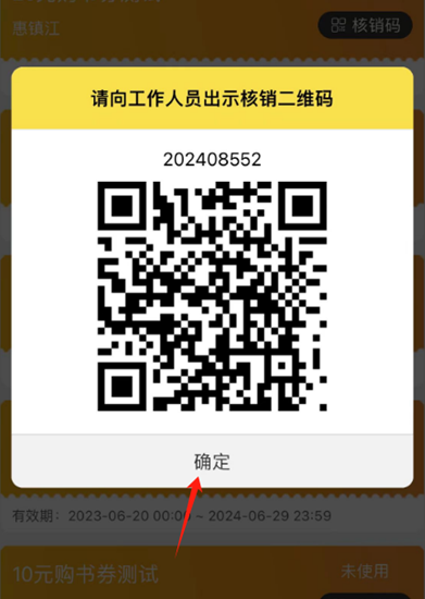 第三步:向书店工作人员出示核销二维码。核销后,点击“确定”返回。