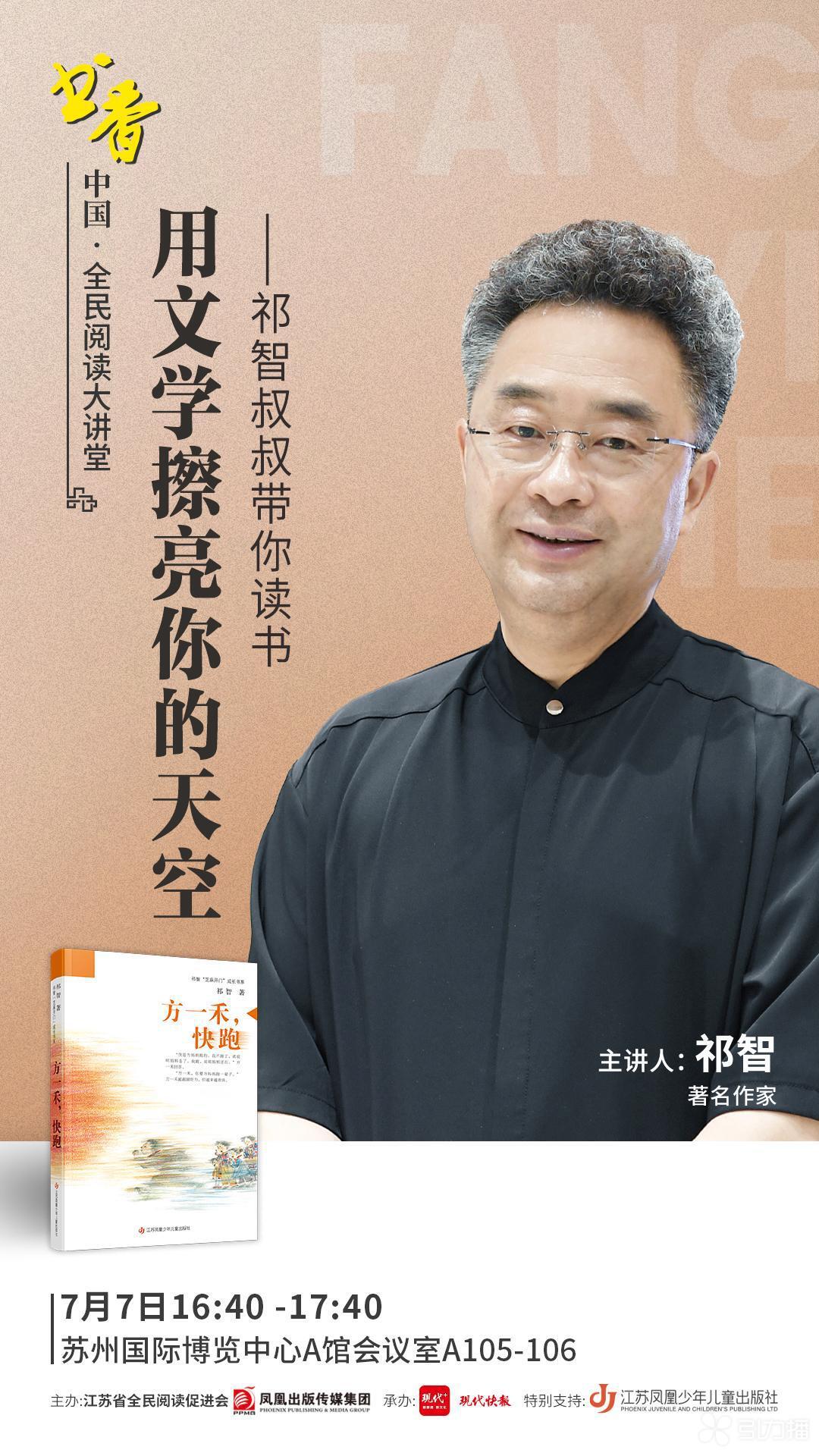 盛夏时节,金鸡湖畔再飘书香。7月5日至9日,第十四届江苏书展将在苏州国际博览中心举办。记者获悉,7月7日下午,著名作家祁智将在书展重点活动“书香中国·全民阅读大讲堂”上开讲《用文学擦亮你的天空》。