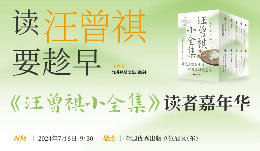 江苏凤凰文艺出版社将在书展期间,重磅推出《汪曾祺小全集》新书,并于7月6日现场举办汪曾祺读者嘉年华活动,专为广大青少年读者奉上暑期阅读盛宴。