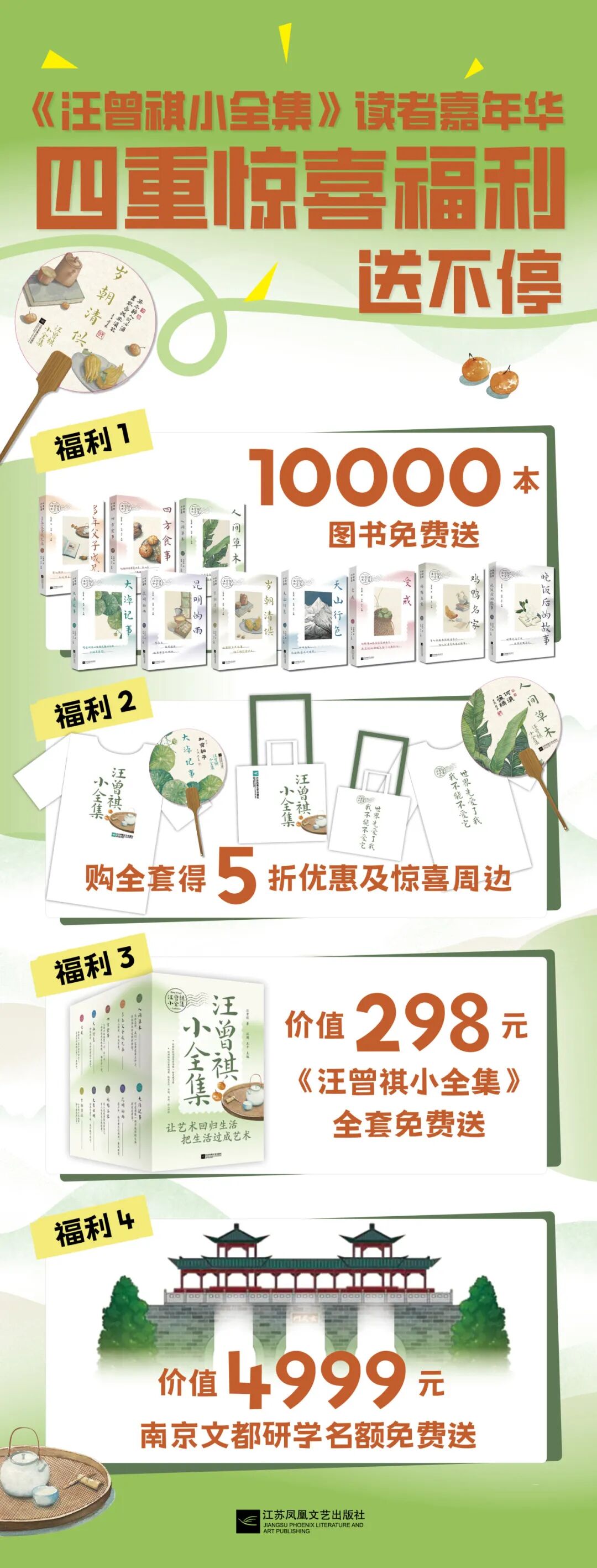 🌟线下到江苏书展凤凰文艺社展位扫码加入“汪曾祺小全集共读群”,即可获赠《汪曾祺小全集》中随机一本,每天限量2000本,先到先得!