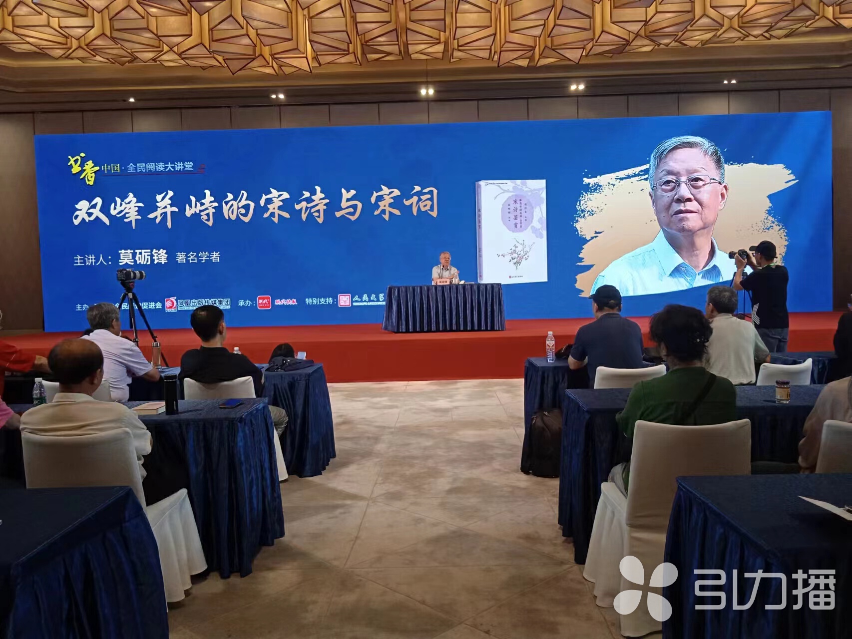“继承中华优秀传统文化最重要的工作,就是将最具代表性的经典著作介绍给广大读者,让它们走进千家万户。在我看来,宋诗和宋词就很好地代表了中华优秀传统文化的核心精神。” 今天(7月5日)一早,第十四届江苏书展如约而至。苏州国际博览中心内,“书香中国全民阅读大讲堂”第一场由南京大学文科资深教授、著名学者莫砺锋带来关于“双峰并峙的宋诗与宋词”的精彩分享,他通过宏观与微观的结合,带领读者遨游在宋代文坛,一探古诗词的奇绝魅力。