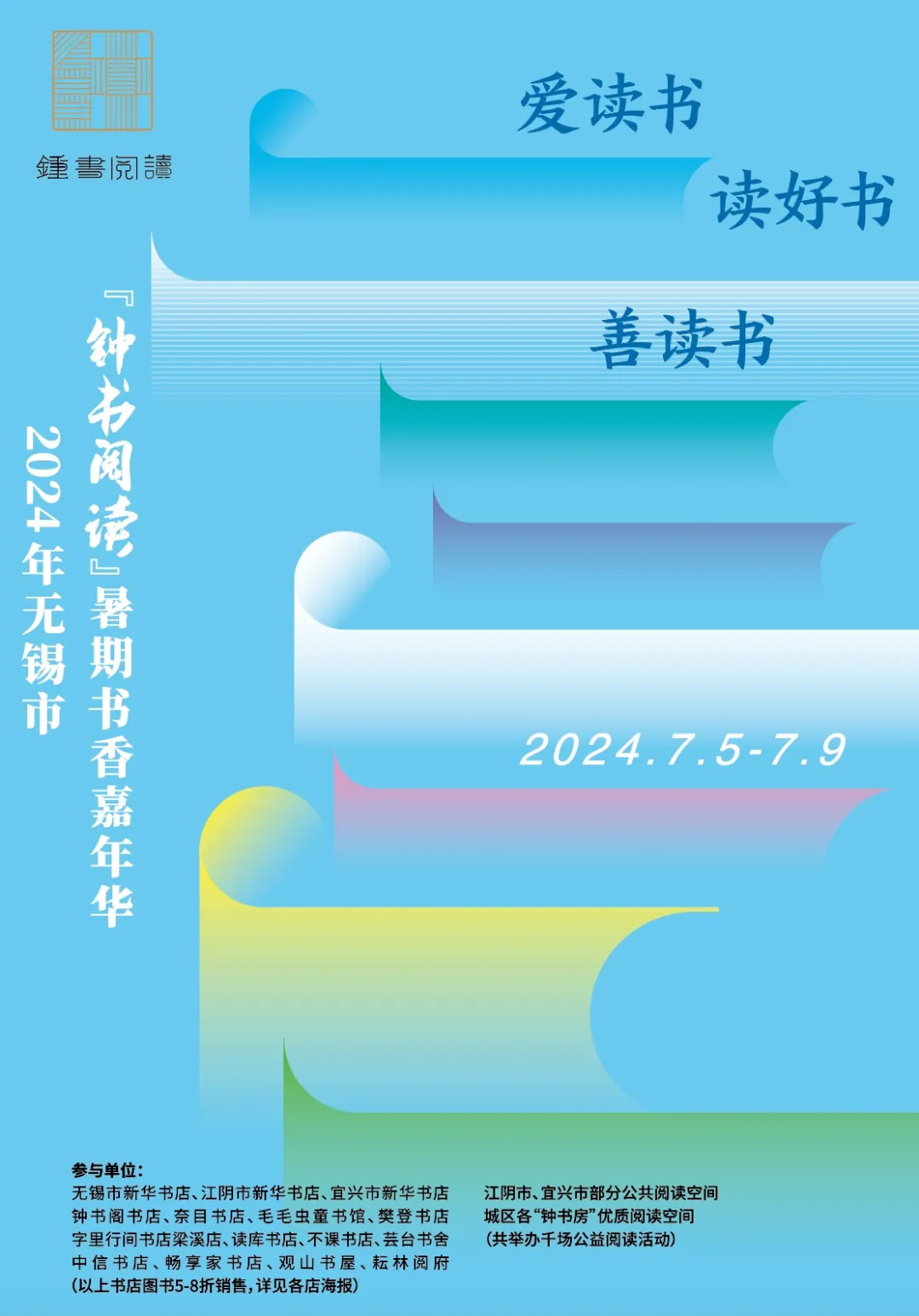 7月5日至9日,在第十四届江苏书展举办之际,无锡将迎来一年一度的“钟书阅读”暑期书香嘉年华,全市15家实体书店和百余个“钟书房”齐发力,引导读者走进阅读现场,发现城市之美。