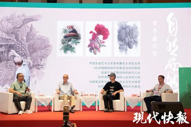 7月5日,《自然而然 曾孝濂自传》新书发布会在第十四届江苏书展现场举行。该书是曾孝濂亲自撰写的唯一自传,翔实记述了他各个历史阶段在科学画、博物画、邮票设计及彩墨生态绘画等领域的探索历程,分享了他个人在艺术创作上的观念确立与技法探索。