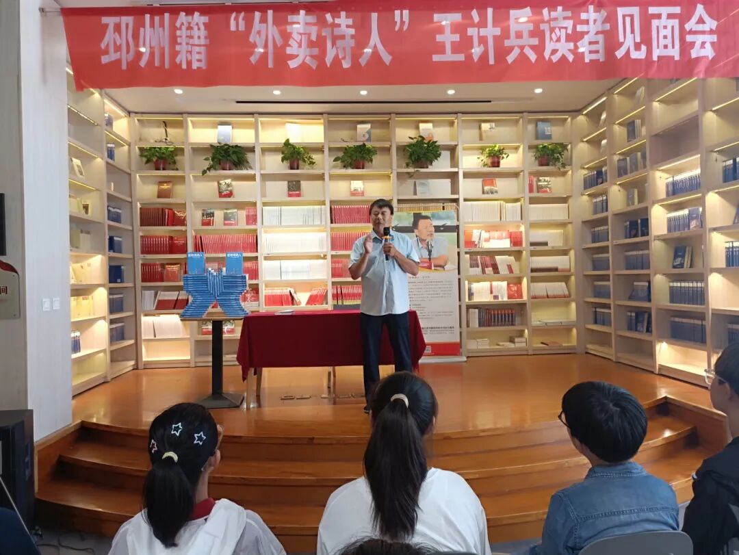 7月7日,第七届淮海书展举办的第三天,邳州籍“外卖诗人”、中国作家协会会员王计兵走进邳州新华书店,与读者们相聚一堂,讲述诗歌背后的故事,开启一场关于诗意的探索之旅。