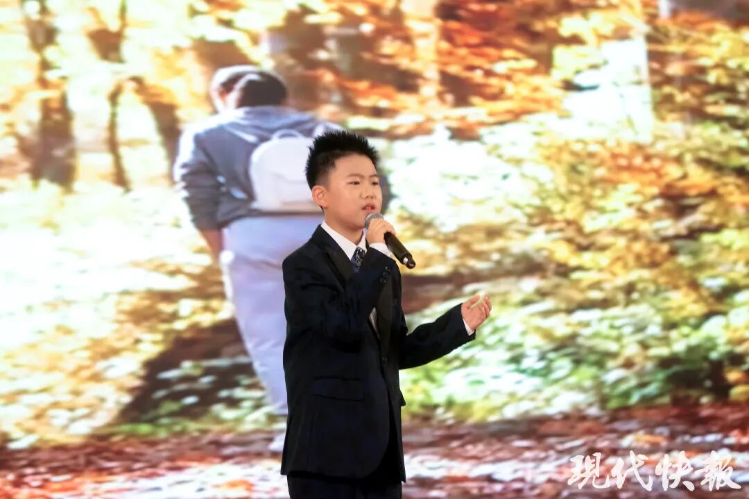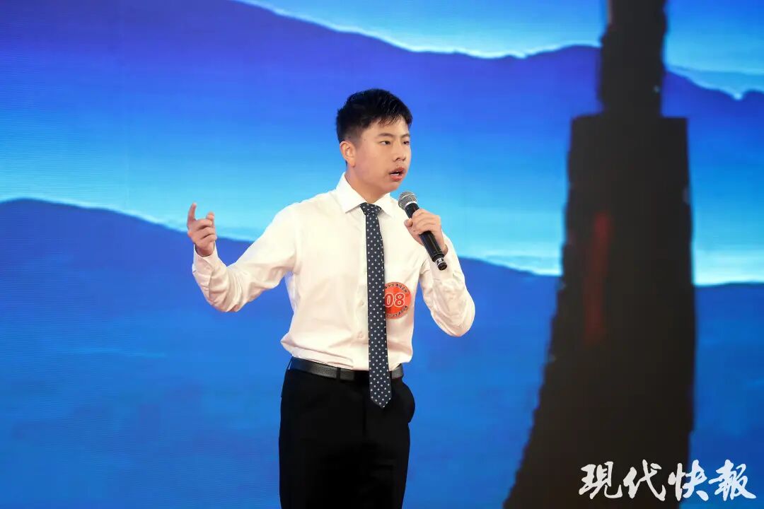 来自苏州工业园区星湾学校的白景升获得了本届大赛的中学组特等奖。时值“七七事变”87周年,白景升特意选择了诵读《在欢呼的人群中》,讲述抗日战争胜利之后,一位老兵对牺牲的战友们的怀念,“选择这样的作品,让我们可以更好地缅怀先烈,珍惜当下的幸福”。为了准备这次诵读展示,白景升花了一个月左右的时间反复练习,在诵读时有意增加了一些表演的细节,比如站在山坡上向战友们呐喊、脚踢敌人等等。