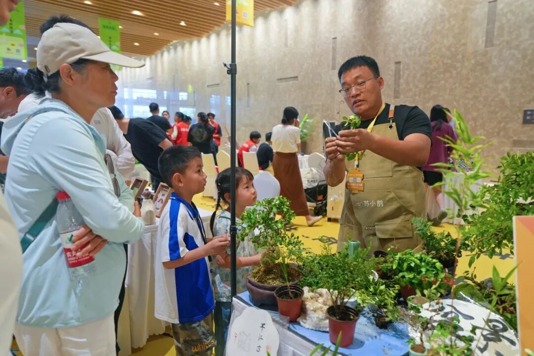 来自宁波的陆同学今年刚刚大学毕业,这次是跟妈妈一起来苏州毕业旅行的。“我们正巧路过这里,知道里面在办书展就进来看看。”陆同学在风物集展示区的苏小鹊非遗苏派盆景展位停下了脚步。苏小鹊品牌主理人毛凤伟正展示着盆景养护技巧,也邀请陆同学上前体验。“我们很喜欢养花,这次蹭到了不少干货技巧,很有收获,回去可以派上用场啦。”陆同学开心地说。