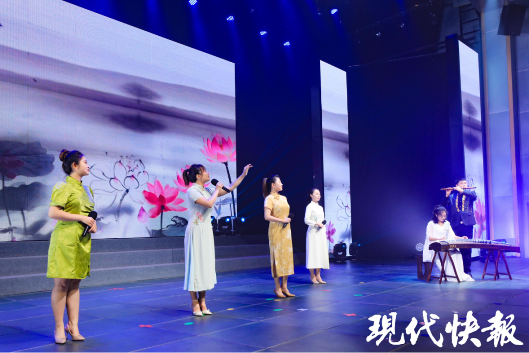 活动现场,来自宿豫区的玉泉山路小学和张家港实验小学的师生们分别朗诵了《中国声音》与《中国脊梁》,诠释对时代英雄的崇敬和对祖国的热爱。诗画节目《相遇杉荷园》带领观众走进了宿豫区新庄镇的杉荷园,让观众身临其境欣赏“接天莲叶无穷碧”的优美风景和“水杉直耸向云端”的生态画卷,切身感受宿豫区乡村旅游新业态的高速发展和新时代乡村振兴的累累硕果。