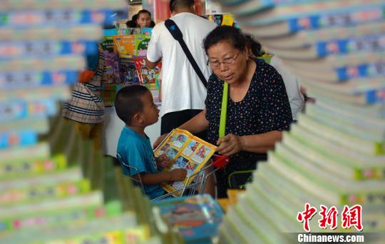 祖孙俩认真挑选合适书籍。 朱志庚 摄