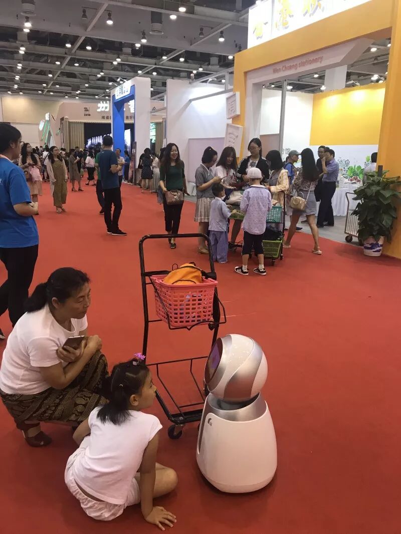 ②书展上,不少小朋友面对机器人导购员充满好奇。 本报记者 李婧璇 摄